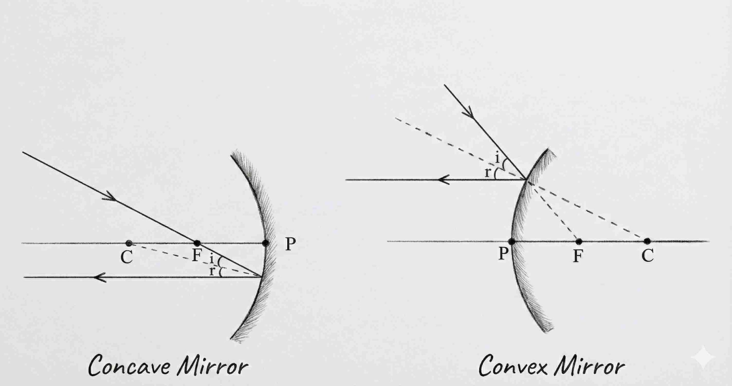 → These apply to all reflecting surfaces, including spherical mirrors.