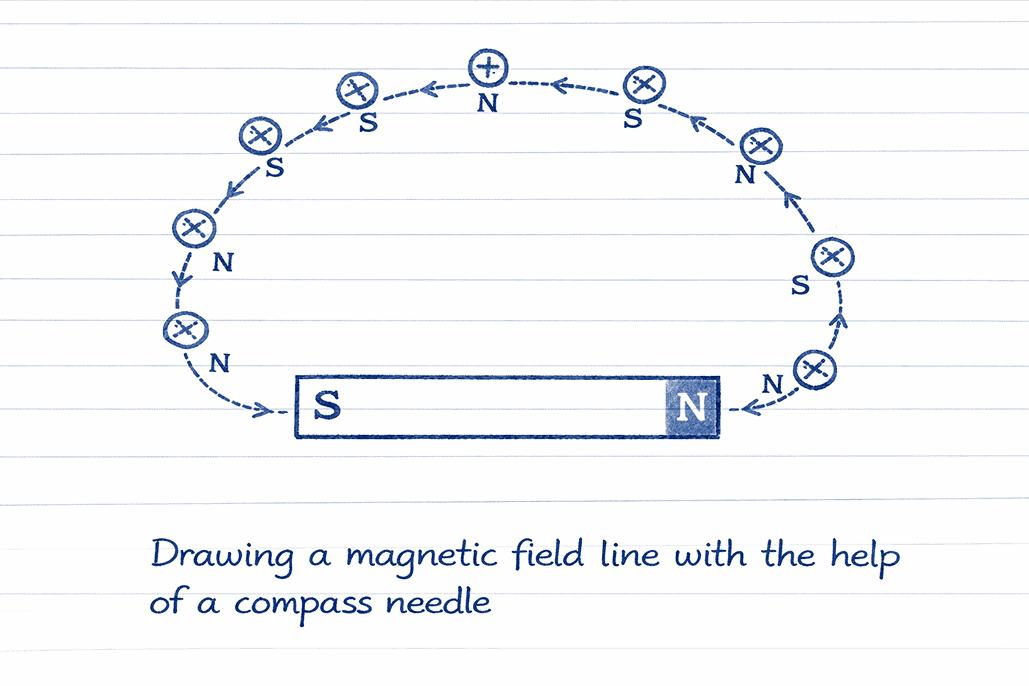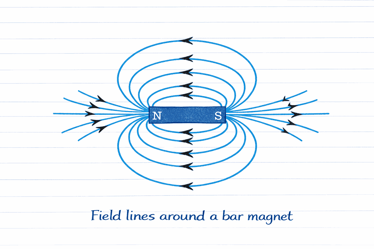 • Emerge from the North Pole → enter the South Pole (outside magnet)