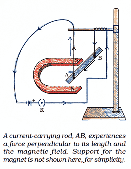 • A current-carrying conductor in a magnetic field experiences a force